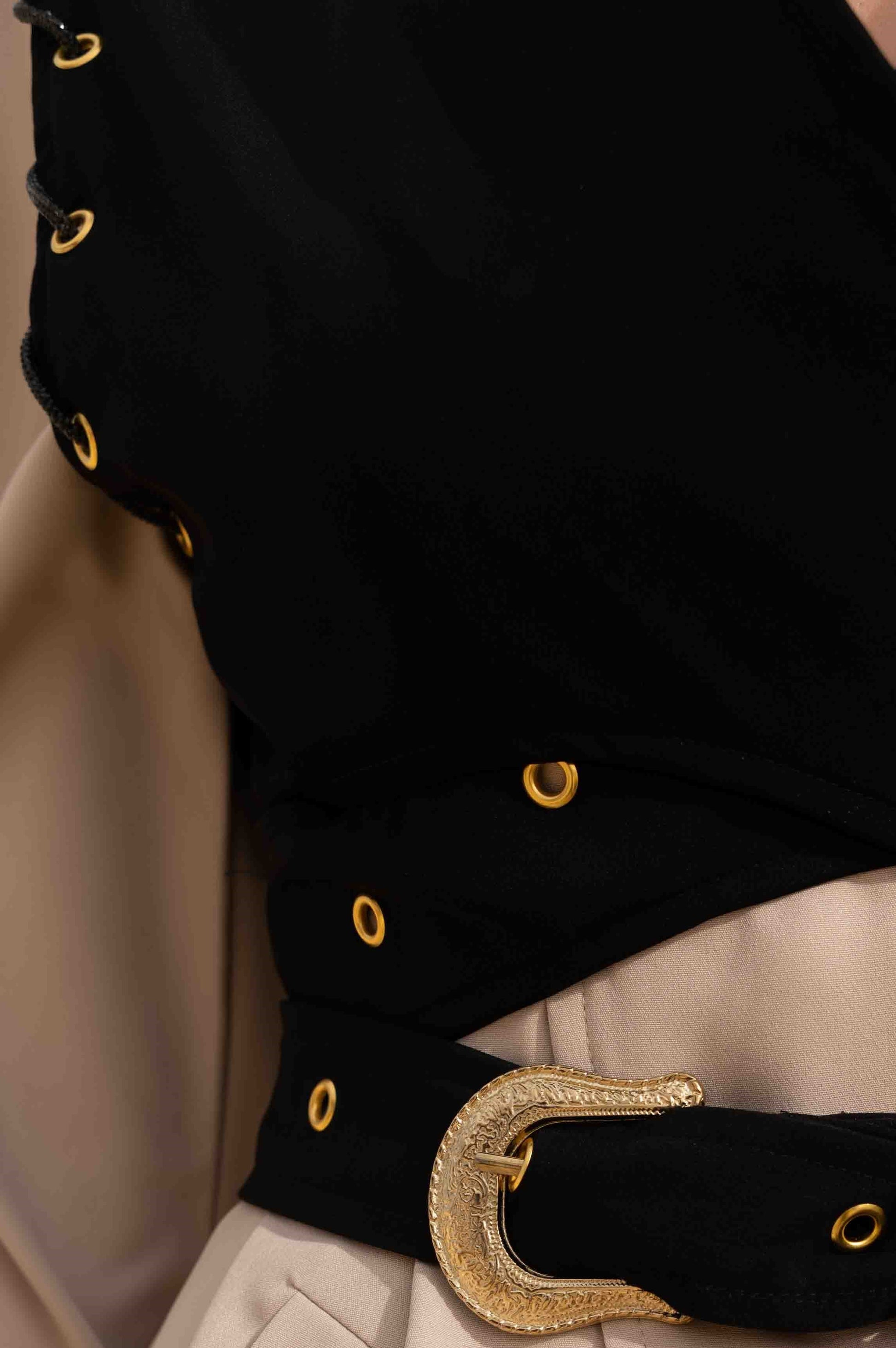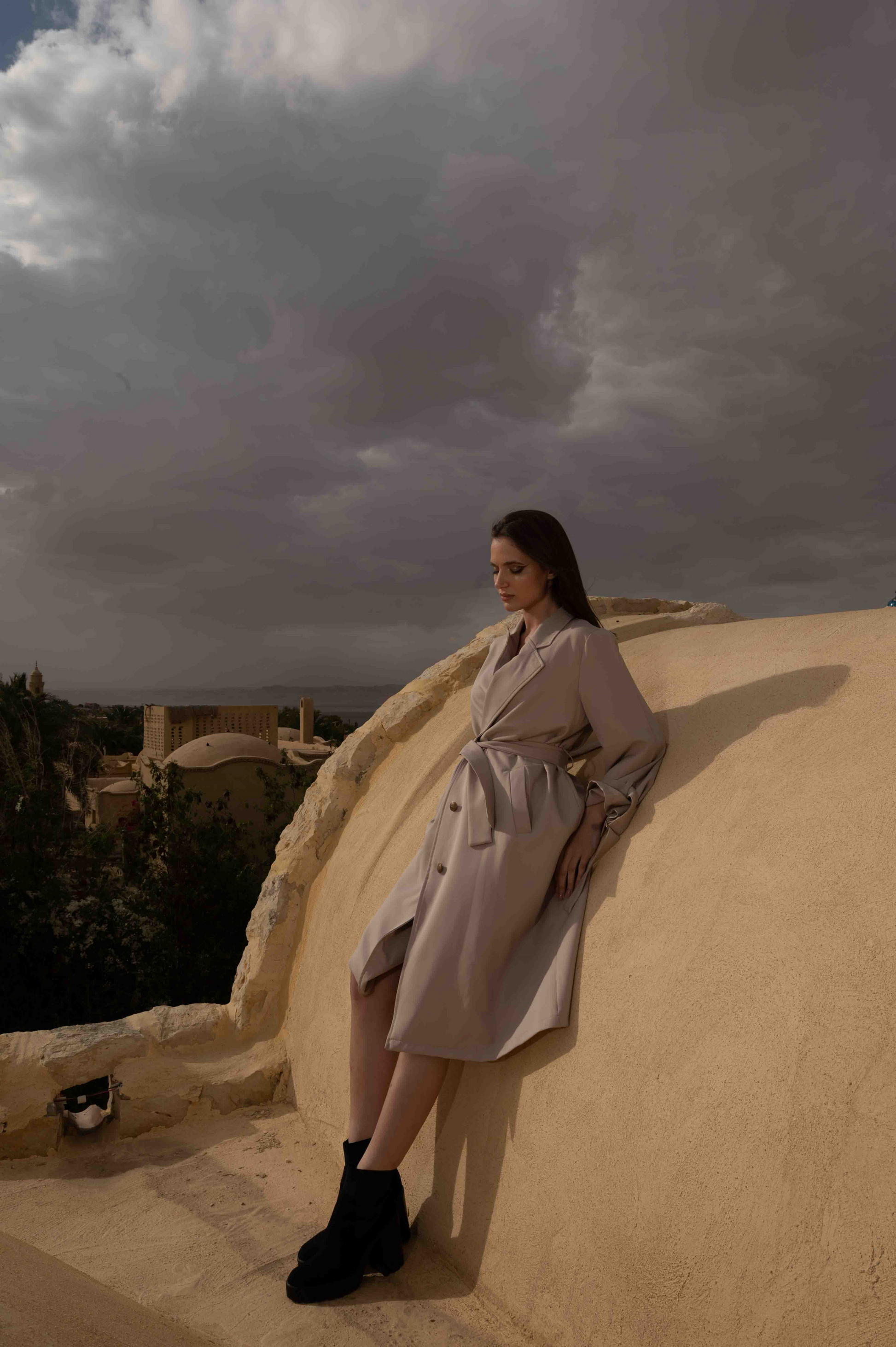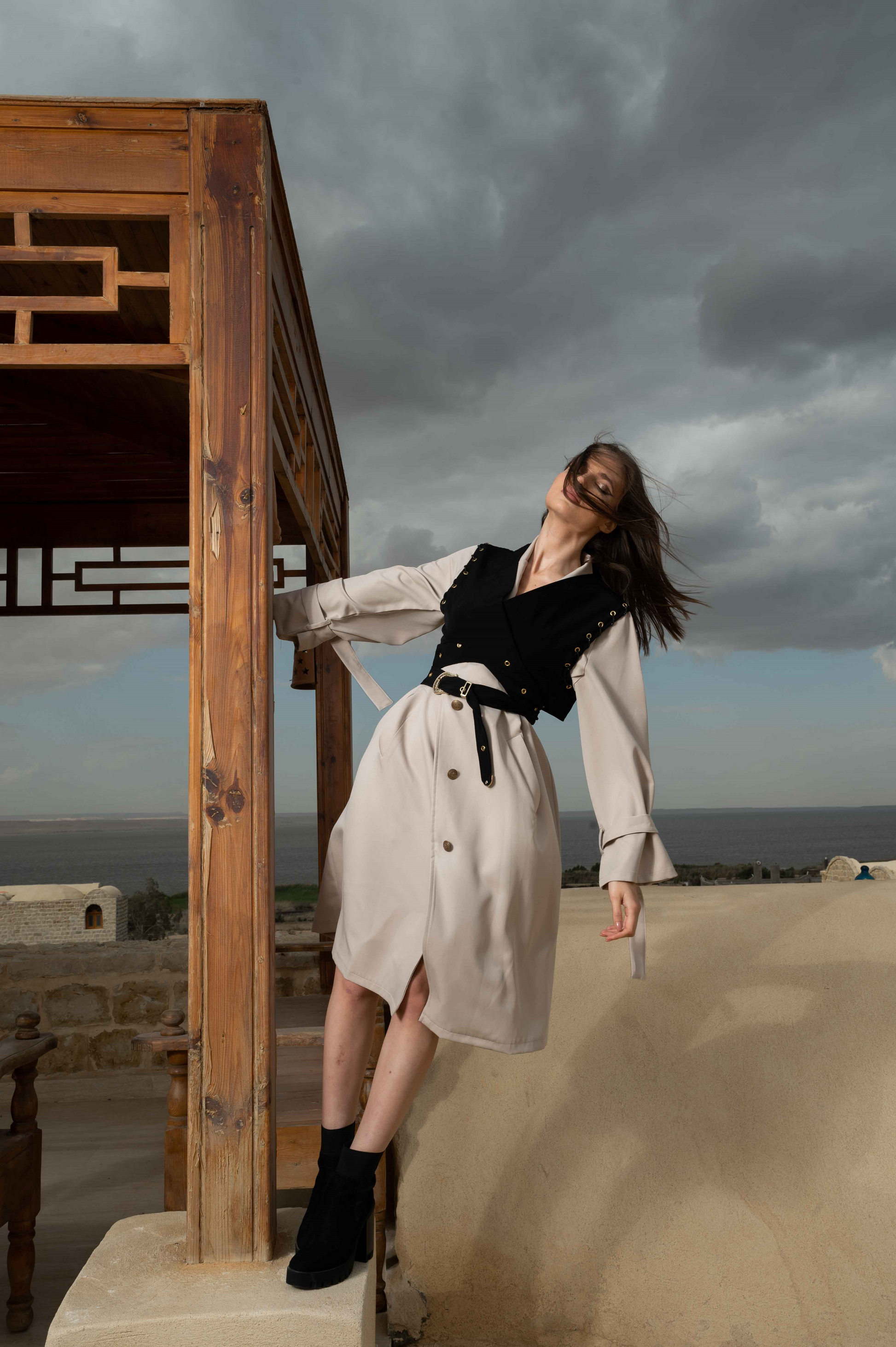 The Miss 'S' Bell Coat is Consists of three pieces " Coat, Vest and Belt" crafted from a delicate, luxurious fabric material to give freedom of movement and a sense of comfort and relaxation, featuring with a craft work of a sparkle gelatin robe twisted through The Armhole.