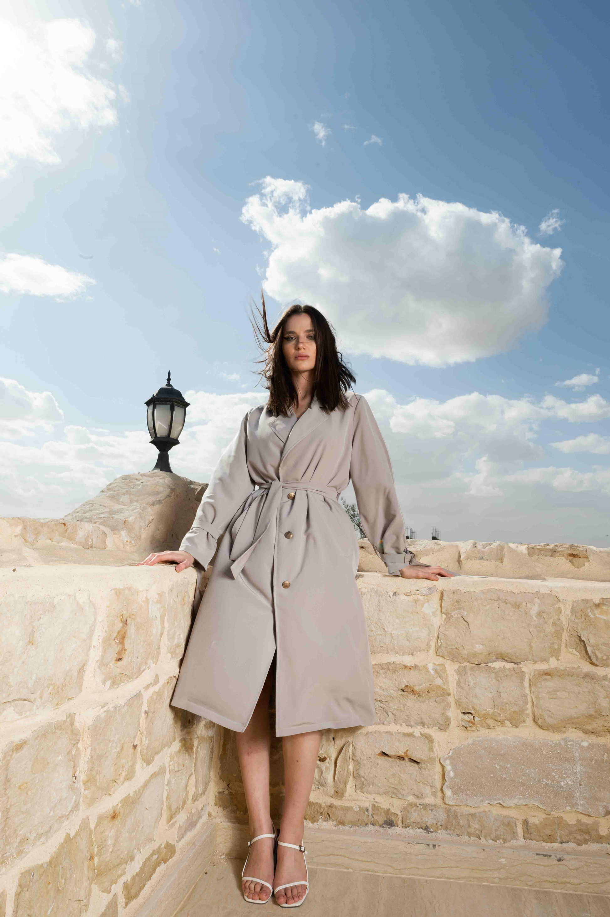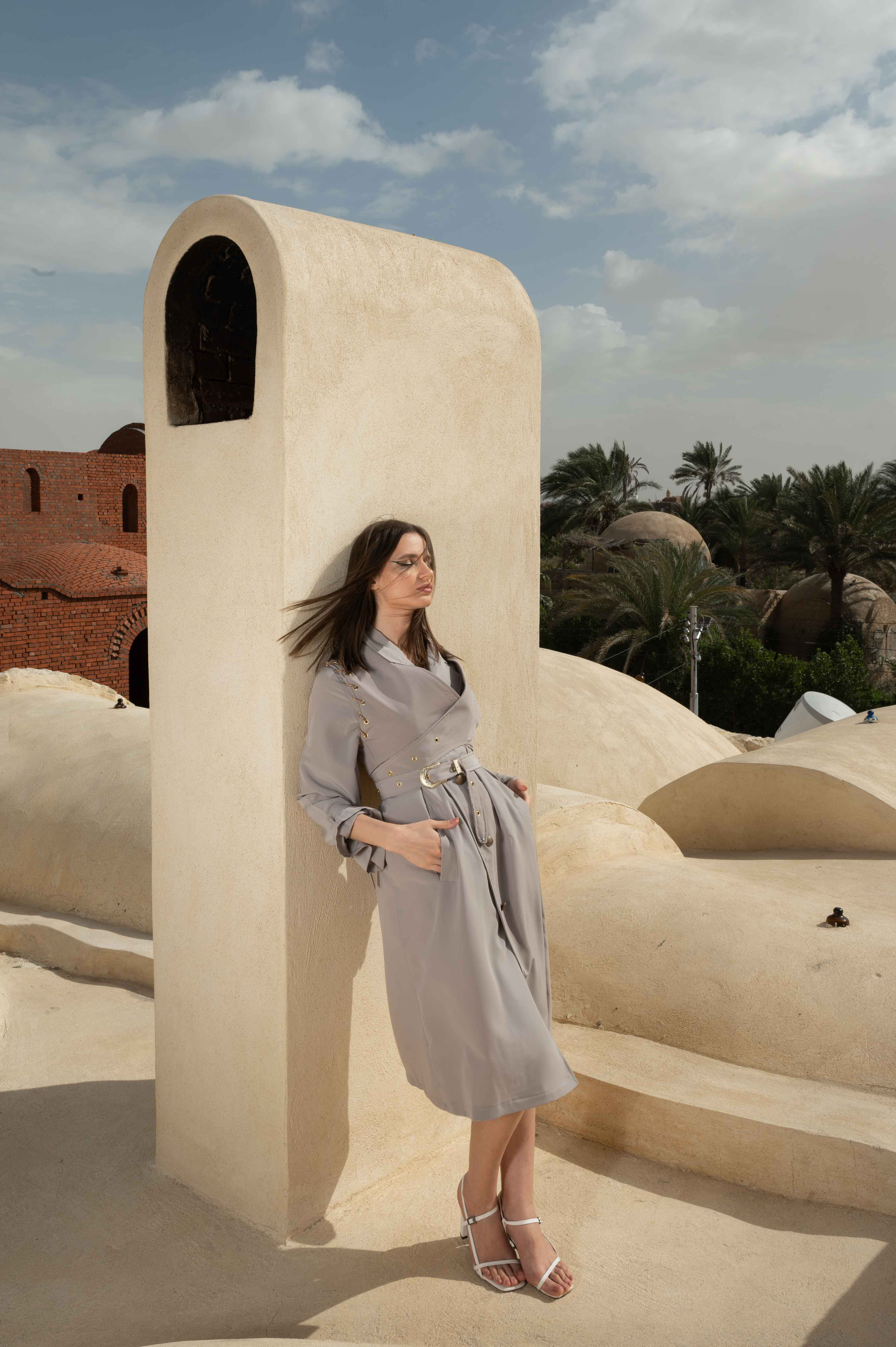 The Miss 'S' Bell Coat is Consists of three pieces " Coat, Vest and Belt" crafted from a delicate, luxurious fabric material to give freedom of movement and a sense of comfort and relaxation, featuring with a craft work of a sparkle gelatin robe twisted through The Armhole.giving a luxurious, empowering feminine look.